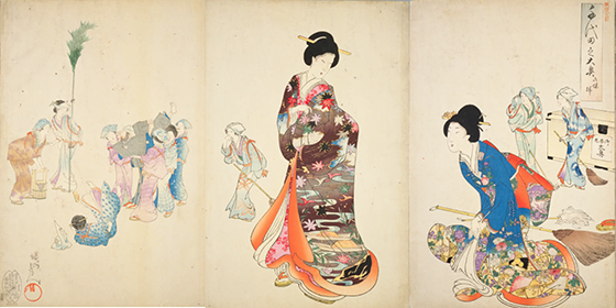 年末に立つ市で、正月を迎えるための品々を売り買いする市場のこと。江戸時代には浅草・日本橋などの市が特に賑わい、松飾りやしめ縄、羽子板、玩具、歳末用品などが並びました。年越しの支度を整えるため、多くの人々が行き交い、町の年の瀬を象徴する風物詩とされました。