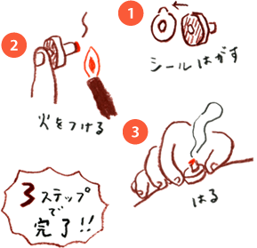 せんねん灸ならひとりですぐできます。シールをはがして、火をつけて、はる。