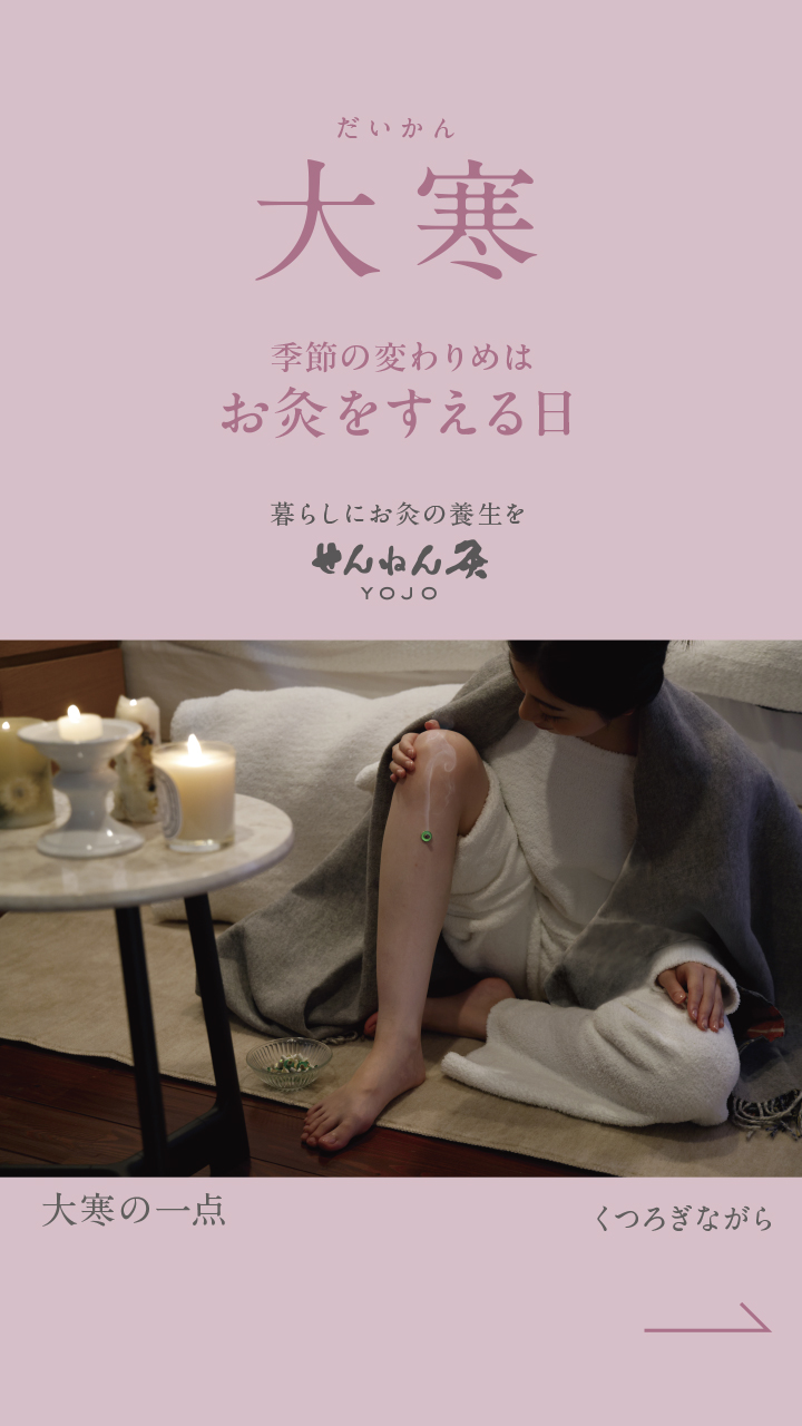 2025.12 2026.01 2026.02 長浜 銀座 大阪 京都 名古屋 博多 その他イベント 日 月 火 水 木 金 土 1名古屋●はじめてのお灸体験会博多●はじめてのお灸体験会博多●はじめてのお灸体験会大阪●香りをたのしむお灸&お茶会大阪×初めてのお灸体験会15時開始 2 3名古屋▲冬土用・かわらけ灸体験会(季節の養生)名古屋●はじめてのお灸体験会博多●経絡とお灸~肺経~博多●はじめてのお灸体験会大阪▲初めてのお灸体験会大阪▲足裏お灸体験会 4名古屋▲ほうろく灸体験会名古屋●はじめてのお灸体験会博多●「YOJO / OKYU」おためし会博多●はじめてのお灸体験会大阪●初めてのお灸体験会 5名古屋●もぐさづくり体験(しょうが灸)大阪▲「YOJO / OKYU」 おためし会大阪●初めてのお灸体験会 6名古屋●はじめてのお灸体験会博多●ほうろく灸体験会大阪▲初めてのお灸体験会 7名古屋●はじめてのお灸体験会博多●もぐさづくり体験会博多●はじめてのお灸体験会大阪×初めてのお灸体験会銀座×「立春を楽しむ」 8名古屋●はじめてのお灸体験会名古屋●はじめてのお灸体験会博多●経絡とお灸~肺経~博多●はじめてのお灸体験会 9 10名古屋●はじめてのお灸体験会名古屋●ほうろく灸体験会大阪●初めてのお灸体験会 11名古屋●はじめてのお灸体験会博多●はじめてのお灸体験会博多●はじめてのお灸体験会大阪▲初めてのお灸体験会 12名古屋●はじめてのお灸体験会大阪●初めてのお灸体験会大阪▲香りをたのしむお灸&お茶会 13名古屋●はじめてのお灸体験会名古屋●お茶とお灸を楽しむ会博多▲ほうろく灸体験会大阪▲初めてのお灸体験会大阪●もぐさづくり体験会 14名古屋●はじめてのお灸体験会名古屋🎂7周年記念博多●経絡とお灸~肺経~博多●はじめてのお灸体験会大阪▲初めてのお灸体験会15時開始 15名古屋●もぐさづくり体験(しょうが灸)名古屋🎂7周年記念博多●はじめてのお灸体験会大阪▲足裏お灸体験会大阪▲初めてのお灸体験会15時開始銀座×『はじめてのお灸』会 16 17名古屋●竹しお灸体験会名古屋●はじめてのお灸体験会銀座×『よもぎを楽しむ』会 大阪▲香りをたのしむお灸&お茶会 18博多×経絡とお灸~腎経~博多×はじめてのお灸体験会名古屋×ほうろく灸体験会名古屋×冬土用・かわらけ灸体験会(季節の養生)銀座×「YOJO / OKYU」おためし会大阪🎂9周年京都×はじめてのお灸体験会大阪×香りをたのしむお灸&お茶会名古屋●びわの葉灸体験会(棒温灸琵琶湖)名古屋▲はじめてのお灸体験会博多●ほうろく灸体験会大阪▲「YOJO / OKYU」 おためし会 19名古屋●はじめてのお灸体験会名古屋●ほうろく灸体験会博多●「YOJO / OKYU」おためし会博多●はじめてのお灸体験会大阪▲初めてのお灸体験会大阪×足裏お灸体験会 20博多×「YOJO / OKYU」おためし会博多×はじめてのお灸体験会名古屋×お茶とお灸を楽しむ会名古屋×ほうろく灸体験会大阪×初めてのお灸体験会銀座×「大寒を楽しむ」とっておき京都×はじめてのお灸体験会大阪▲初めてのお灸体験会名古屋●はじめてのお灸体験会 21博多×はじめてのお灸体験会名古屋×冬土用・かわらけ灸体験会(季節の養生)大阪🌟四天王寺イベント出店京都×はじめてのお灸体験会大阪×初めてのお灸体験会大阪▲初めてのお灸体験会15時開始名古屋●はじめてのお灸体験会名古屋●ほうろく灸体験会大阪🌟四天王寺イベント出店博多●はじめてのお灸体験会博多●はじめてのお灸体験会銀座×「雨水を楽しむ」 22博多●ほうろく灸体験会博多●はじめてのお灸体験会名古屋●びわの葉灸体験会(棒温灸琵琶湖)大阪▲「YOJO / OKYU」 おためし会大阪▲初めてのお灸体験会大阪🌟四天王寺イベント出店大阪●初めてのお灸体験会名古屋●はじめてのお灸体験会大阪🌟四天王寺イベント出店大阪▲もぐさづくり体験会15時開始博多●経絡とお灸~肺経~ 23名古屋×冬土用・かわらけ灸体験会(季節の養生)大阪▲足裏お灸体験会大阪×初めてのお灸体験会 24博多▲経絡とお灸~腎経~博多▲はじめてのお灸体験会名古屋●はじめてのお灸体験会大阪▲初めてのお灸体験会銀座×「YOJO / OKYU」おためし会京都×はじめてのお灸体験会 25博多●はじめてのお灸体験会博多●はじめてのお灸体験会名古屋×はじめてのお灸体験会大阪×初めてのお灸体験会15時開始京都×「YOJO / OKYU」おためし会 26 27博多●もぐさづくり体験会博多●はじめてのお灸体験会名古屋▲はじめてのお灸体験会大阪▲初めてのお灸体験会大阪▲「YOJO / OKYU」 おためし会銀座×「YOJO / OKYU」おためし会 28博多▲はじめてのお灸体験会博多●はじめてのお灸体験会名古屋▲はじめてのお灸体験会大阪×足裏お灸体験会京都▲もぐさづくり体験会 29名古屋●もぐさづくり体験(しょうが灸)大阪▲初めてのお灸体験会大阪▲香りをたのしむお灸&お茶会京都×はじめてのお灸体験会 30博多●経絡とお灸~腎経~名古屋▲はじめてのお灸体験会名古屋●ほうろく灸体験会大阪●初めてのお灸体験会京都▲「YOJO / OKYU」おためし会 31博多▲ほうろく灸体験会名古屋▲冬土用・かわらけ灸体
