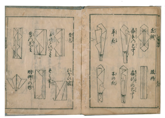 五巻「女節用集字尽」には、暮らしにまつわる言葉や用語、のし紙の折り方など、日常に役立つ知恵をまとめた便利帳が収められています。