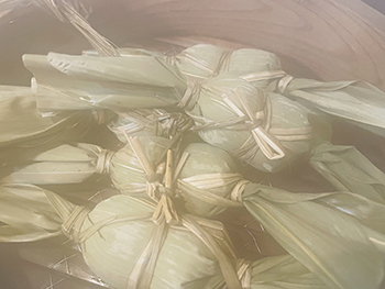 笹には防腐作用があり香りもよく、日持ちのする保存食として、また農作業の合間のおやつとして親しまれてきました。新潟では端午の節句にも欠かせません。