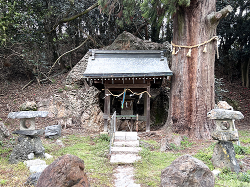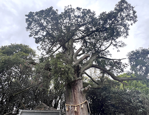 境内に立つ大きな杉は、上の方が枯れている姿が印象的で、合戦の際に飛び交った矢が枝に当たった名残ともいわれています。そんな歴史にふれながら歩くことができます。