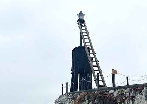 灯台は高床式の構造をもち、四隅の柱に加えて中央にも一本の支柱を据えた、五本柱で全体を支える独特の形式が特徴です。