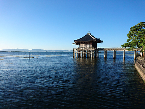 琵琶湖にせり出すように建つ浮御堂(うきみどう)は、紫式部も訪れたと伝わる歴史あるお堂。堅田を訪れたらぜひ立ち寄っていただきたい名所です。