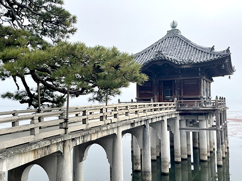 とりわけ堅田を象徴する「浮御堂」は、平安時代以来、湖上に張りだす美しい姿で多くの旅人を惹きつけ、今もなお琵琶湖の風景と見事に調和する名所として知られています。