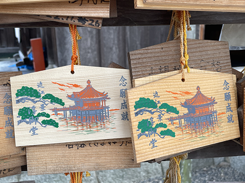 また、浮御堂は多くの文化人に愛され、紫式部をはじめ、松尾芭蕉、小林一茶、広重などが訪れたと伝えられています。彼らはこの景色を詩や絵に残し、その魅力を今に伝えています。芭蕉の“鎖あけて 月さし入れよ 浮御堂”、近衛信尹の『堅田落雁図』、さらに広重や葛飾北斎が描いた『近江八景・堅田落雁』など、数々の作品に浮御堂の姿を見ることができます。