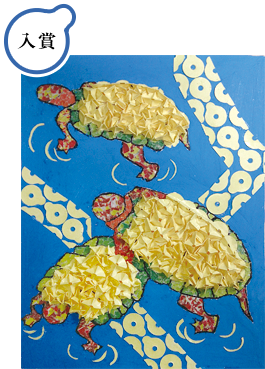 とてもむずかしかったけれどコラージュとシールとパンチを使い、アートに近いものができたところがよかったです。パンチを使うことがよいアイディアだったと思っています。