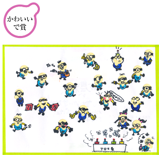 今回シールアートのお知らせを5歳の娘に見せると「なんだかこの丸、ミニオンズみたい」と言うので、2人で「オキュオンズ」(お灸が大好きなミニオンズ風の生き物)をアートしてみました!楽しいひと時でした。