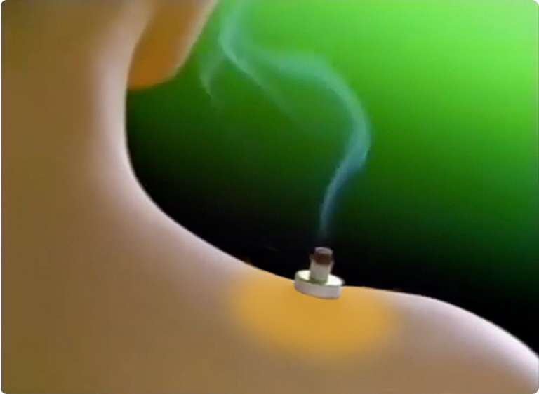 せんねん灸は、台座の厚みや構造、通気孔によって、やさしく身体に温もりが伝わるよう工夫されています。